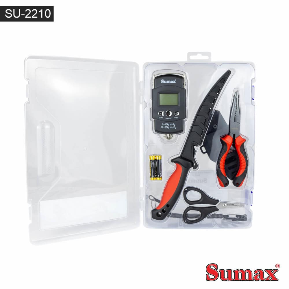 El kit viene con un estuche plástico multiusos, que se puede utilizar para guardar diversos accesorios como cebos artificiales, anzuelos, herramientas, entre otros.